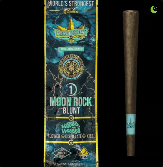Your Presidential Blunt consists of the 13x High Times Award Winning strain Whoa si Whoa. Cultivated by the award winning team from Top-Shelf Cultivation, who has earned its status as an industry leader with over two decades of cultivating. The Flower is infused with the highest quality distillate using presidential's proprietary infusion process and then coated in Whoa si Whoa kief. This infusion and collaboration creates the highest quality of Moon Rocks ever presented to the market. Ground and rolled in an 100% Tobacco free blunt for your enjoyment.